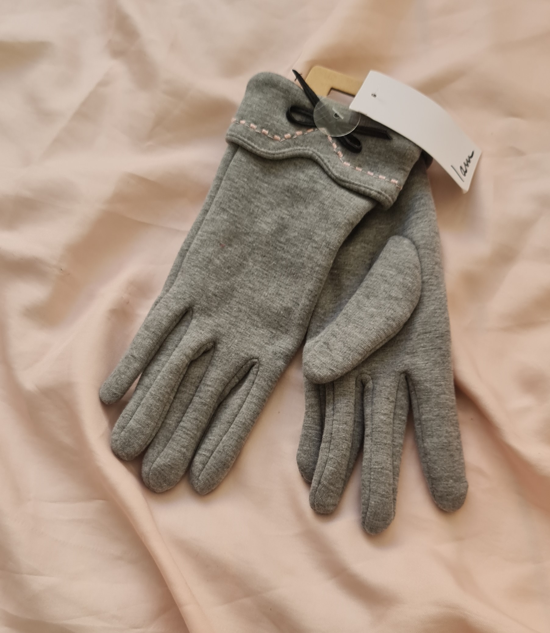 دستکش طوسی پاپیون دار با جنش ضخیم مناسب فصل زمستان